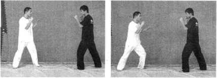 在练习徒手博斗过程中,要将所有的技术融入步法练习、空击 练习、点击练习、攻防练习、喂招练习、递靶练习、模拟练习等方法 之中,并按照此顺序有步骤地进行练习。 步法练习