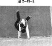 抱对方前腿后突然上抬,对方会本能性地使重心下降,此时我方 顺势用左手及时前伸,别其支撑腿膝后部,同时右手后拉对方左腿, 长腰变脸,左肩顶压对方腿内侧将对方摔倒(图2-48-1至图2-48-4)。