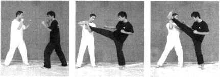 动作要领:抄接小腿,上步举腿,顺势踢支撑腿。