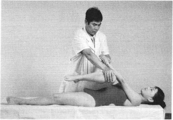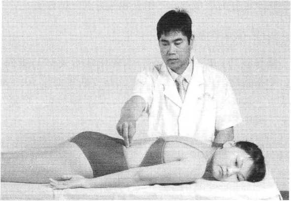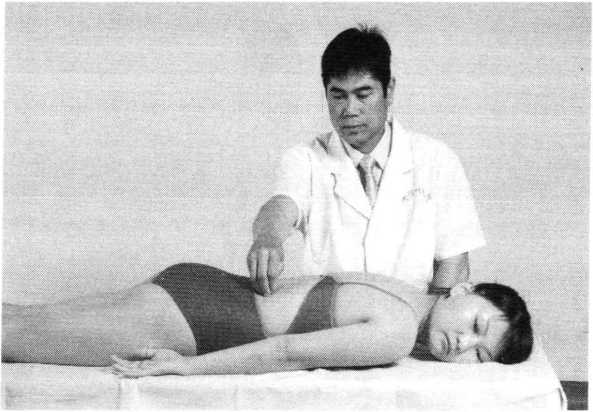对拉法指术者分别用双手固定患者对侧上、下肢体, 作交错方向牵拉的一种方法。本法具有纠正关节错位、解 除粘连、滑利关节之功效,常用于治疗腰舐部疾患。