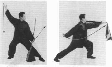 用途:扫斩四周欲攻我 之对手,格挡对方从身后攻 我中、上盘之械。