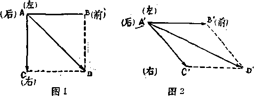 如图1 :以B?作为对方手臂向前发出的力量和它的 方向,以C?作为一般击法用力横击的力量和方向,那 么,C横力和B直力相加就是对方所受到的合力,如图中 D斜?所表示的力量和方向。
