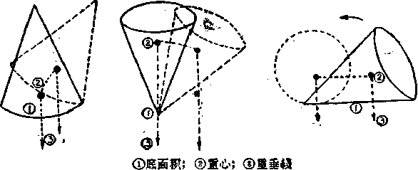 稳定平衡、不稳定平衡和随遇平衡。如图10:?形体是处于稳 定平衡状态,它在不太?A斜的肘候,重心虽然升高,但重心 的重垂?不容易越出底面积,很快就能回复原状。如图n: ?形体是处于不?定平衡状态,只要?U橄一?取匪?贾卮咕Q