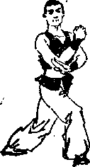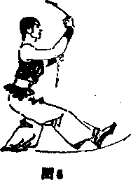 身体起立,重心移致右脚,左脚向右脚后插—步,成 交叉步;同时左掌经右小臂下采抓,放于右肘下,右拳随之 收于左肩处,眼看右方。如图6—1所示》 2 上体右转,重心移至左脚,右脚向左脚后插一步,成 左弓步 然后上体再左转,同时,右肘上提横击于右前方 左拳扶于右小臂外侧。眼看前方。如图6—2所示。