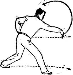 要点痒署.连贯、上下—致。右转身时右肩向下使臂贴 身。推掌向左肩下沉前探 力达掌根或小指