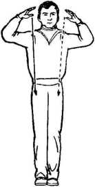 小指侧朝上; 与 从??直推出与肩平,指尖朝上。目视左手方 向(图c ) ,