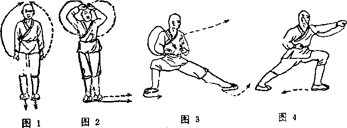 彈腿、跳步要快,衝拳、推掌要與全身動作相協調,兩手向前撲抓時,上體盡 量向前倾。