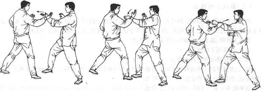 黏单手训练法在黏手的基本手法中,除上述几种基本技术外,尚有缠化、过手、随手等手法。