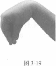 (3 )勾:五指指腹撮拢,指尖关节挺直,手腕勾屈(图3-19)。