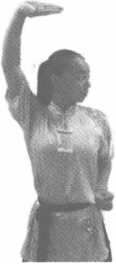 动作说明:右拳向下、向左、向上经头前向右上方划弧架起,拳眼向下,眼看左方(图3-22)。练 习时,可左右交替进行。
