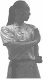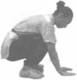 靠拢全蹲,右脚全脚着地,脚尖外展。左脚前脚掌着地,膝部贴近右腿外侧,臀部坐于左腿接 近脚跟处。两手抱拳于腰间。眼向右前方平视(图3-5)。左脚在前为左歇步,右脚在前为右歇步。 要求与要点:挺胸、塌腰,两腿靠拢并贴紧。