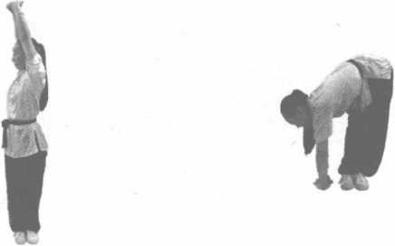 动作说明:以腰、髋关节为轴,上体做前后屈和甩腰动作,两臂也跟着甩动,两腿伸直(图 3-48、图3-49)。