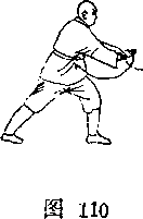 右小臂之上,掌心向下,掌指向 右目视两掌(图110)