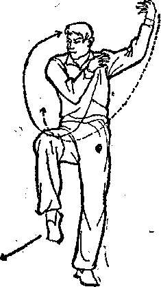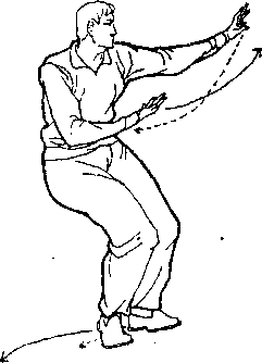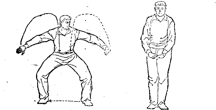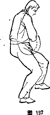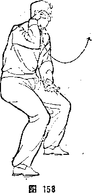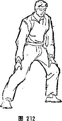 2 )起伏摆动——两脚左右开立,稍宽于肩。从右侧下蹲 伏身,向左摆起身(图211、212)。接着再从左侧下蹲伏身,