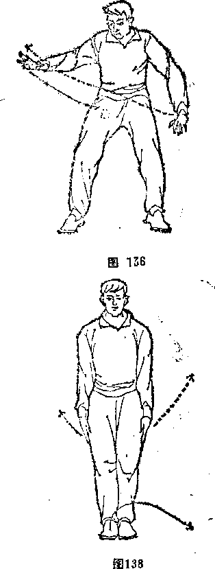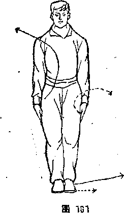 .(1 )错身练法——两肩交替前顺后摆,一顺一坳。如左肩