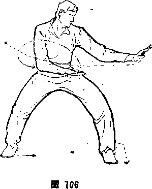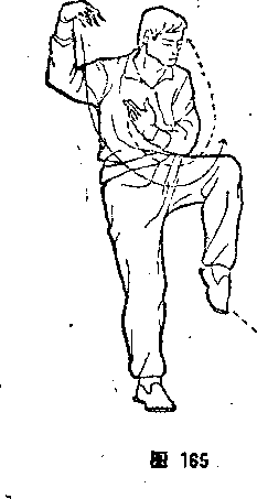 步败势,同本节③,但方向相反(图?左脚插步败势,同 本节④,但方向相反(图172)。?提腿预甩,同本节⑤,但方向