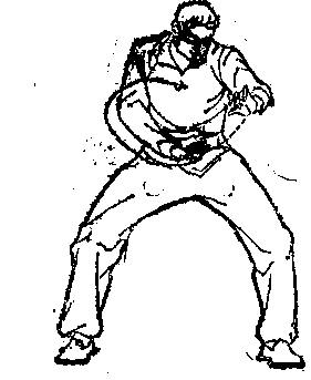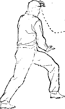 向右磨摆起身。左右起伏,往来无穷。先练死步,再练活步。可 以右磨摆,也可以前后起伏。练法虽然简挚,但其私无穷。在 实际运用中,可配合眼法随意躲闪。