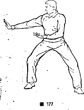 明173明173相反(图173〉。?弓步张嘴,同本节⑥,但方向相反(图74)。