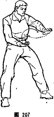 旋印前伸抓,掌心向上(图208)。两掌交替前抓回拉,阴去阳 来,往返无穷。