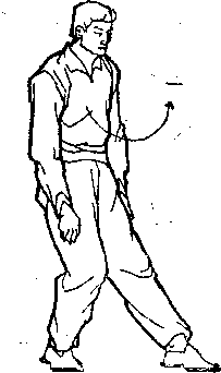 前顺,而右肩后摆,右肩前顺,左肩后摆,像货郎鼓一样地摆