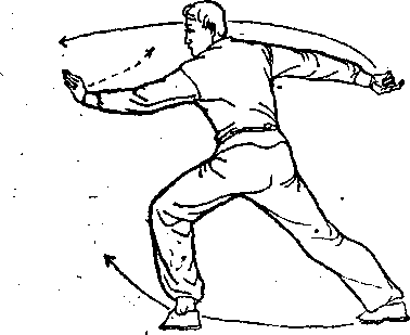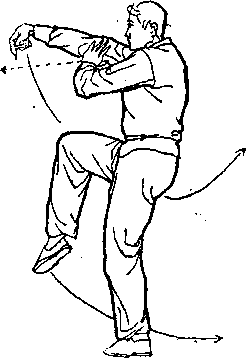 田338田338右腿雇辱提起向前踢弹后回收扣裆;左腿直立。同时,右钩 手变掌,由后经上向前劈砍,随即屈腕再变钩手,钩尖向下;左 宥屈肘,左掌貼于右肘内侧,掌心向右。体面向西,视西方 (图 338 ) 、 田338 田338 明337