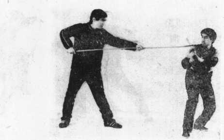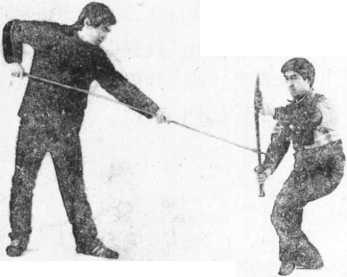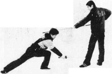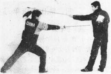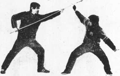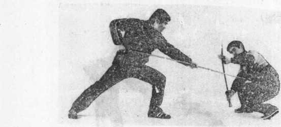 可称“迎风滚闭”,形容 对方人未到风先到,未 触我身,我已觉察,准 备迎击。此全凭自身之 灵敏感。另一方面就是 迎锋接刃,对方器械刺 来,将触我身,我迅疾 扫腰转腕滚闭对方刺来 图478