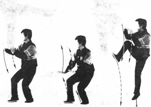要求:随身体下沉,两手下按,切勿弯腰。此动接动下沉 时呼气。