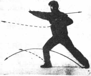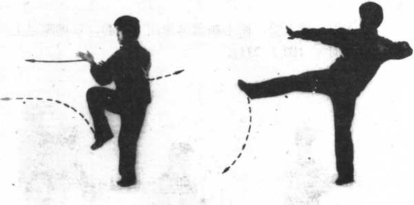 要求:将周身团聚之劲,迅速贯于右脚右手和左肘,左腿独