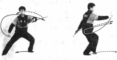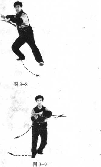 图 3—11图 3—11用法:左手持剑在对方面部一晃,内气贯于右手指前推,直 指对方眼睛,有“二龙戏珠”之意。