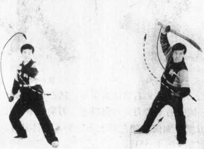 用法:向右侧化过来势,接用抡、劈、扎等刀法均可。