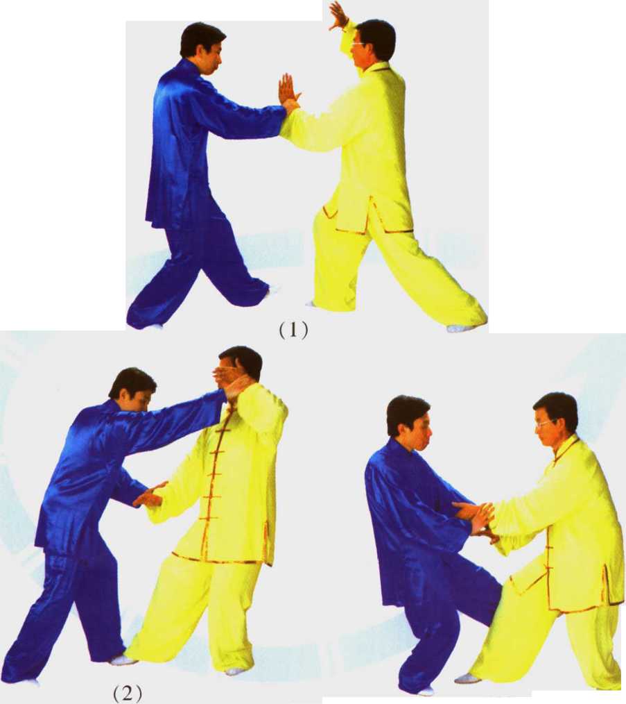 在练习时,对于左右穿梭劲力的体现,目前有两种讲法。 一种认为:“穿梭”的含义是指前臂的动作(无论左臂还是 右臂为前时)在动作过程中有向前上穿架的动作含义。比较 强调穿的动作含义的体现。而另一种的解释为:“穿梭”是 形容向前推按的掌法动作速度之快,劲力之猛。其实两种解 释并不矛盾,无论是穿架也好,还是架撑也好,都是首先起 到防卫的动作意识,而向前的按推掌才是进击的动作实质。 两者缺一不可。