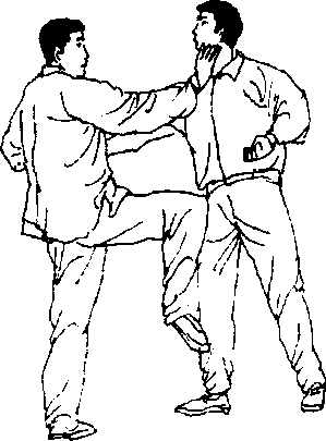 牵拉甲臂要顺其前冲之力;膝顶、托下颌或挑 掌要准确、快速、有力,动作协调一致。