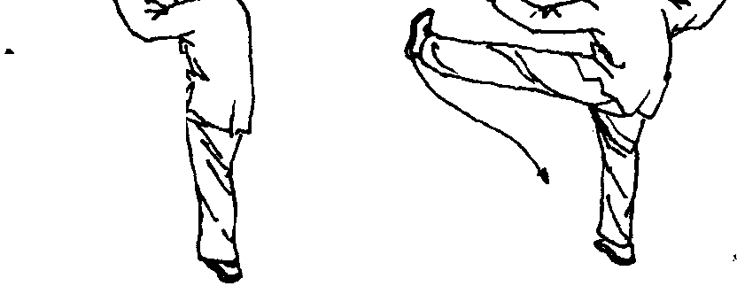 与“右蹬脚”势一样,只是左右方向相反。左蹬脚方向 与右蹬脚成180度(即正西偏北30度)。