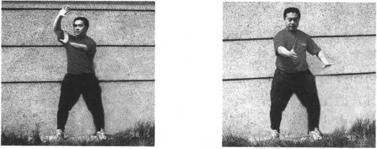 (2) 提插:一掌上提,另一掌下按,然后上提掌指尖领先下