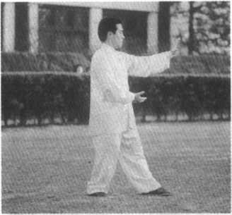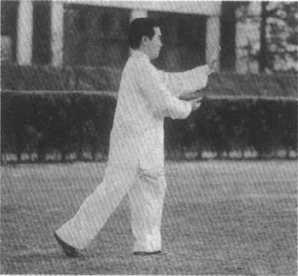 (2)虚步推掌:本势同1.右倒卷肱的(2)虚步推掌,唯左 右相反(见图4-54、4-55、4-56)。
