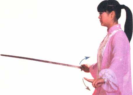 刺剑时,高与胸平,剑尖略高。