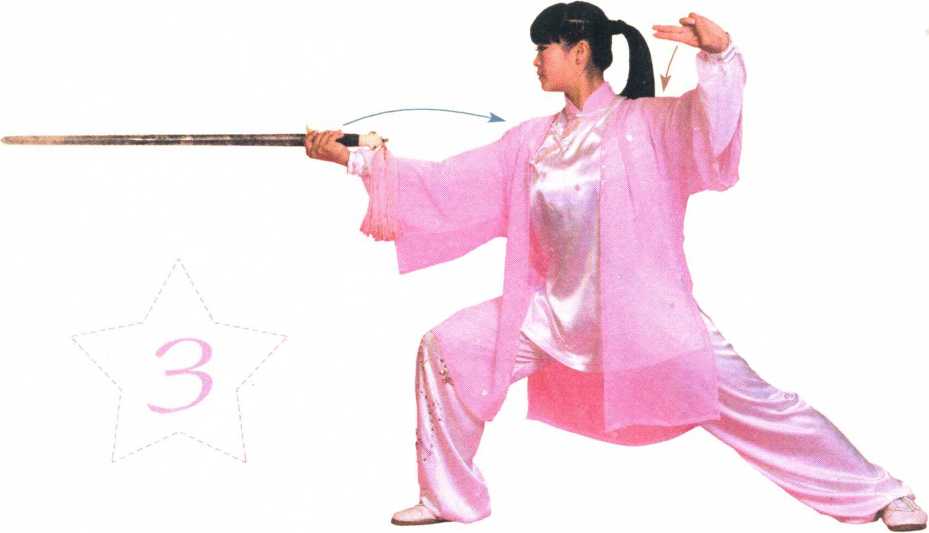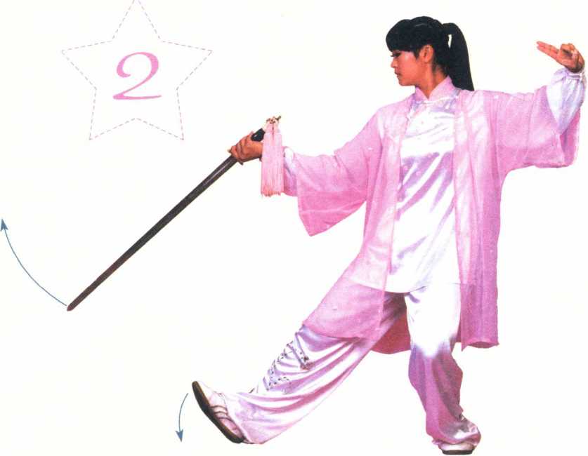 1 .右剑前撩时,握剑松活,弓步与撩剑同时到位。