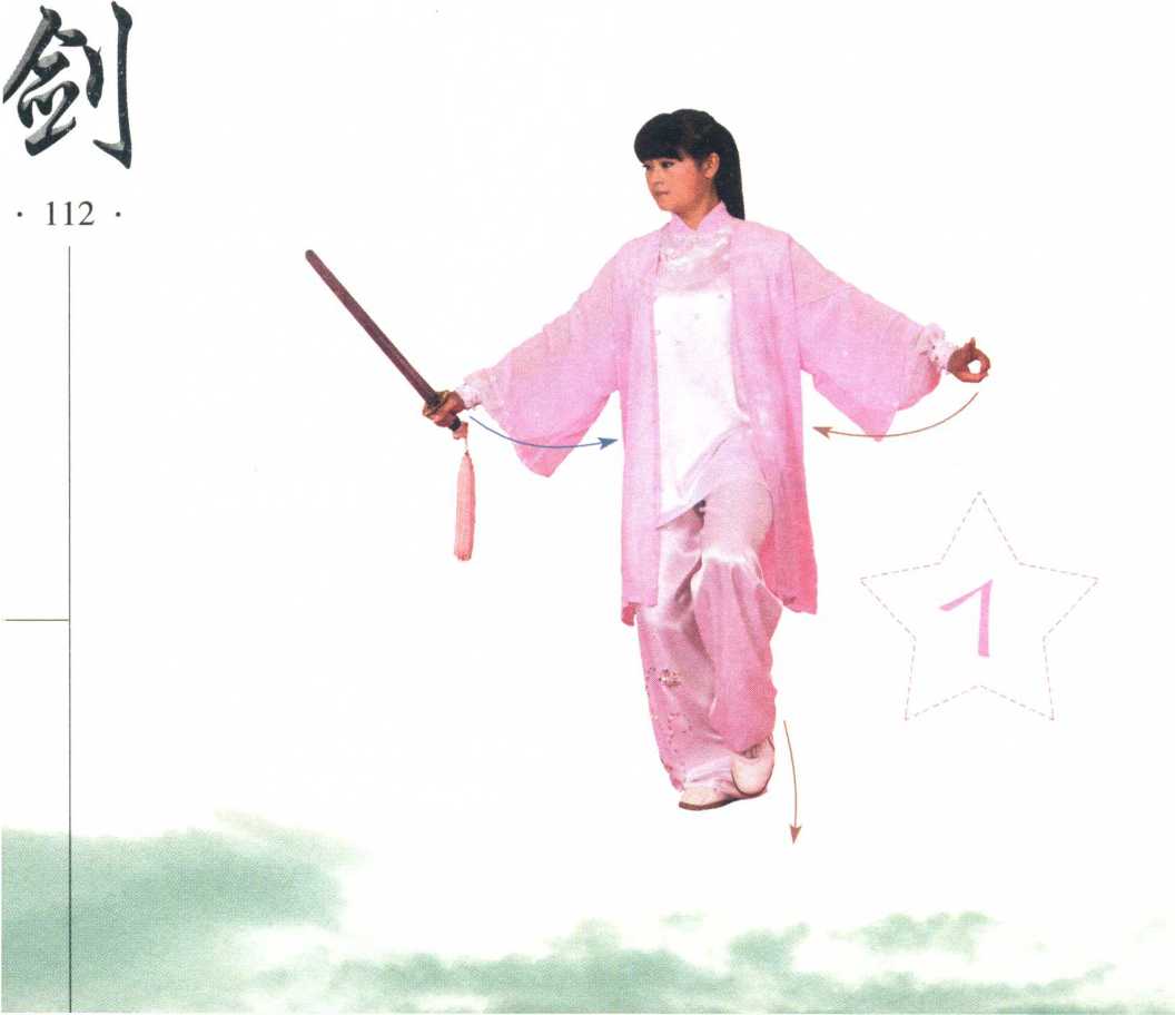 【妹旋1 .上步收剑32 上体微向右转,左脚提起,再向前上步,脚跟着地。两手收至腰卜 间,手心向内。眼看前方。(图32-1、图32-2).1.1?113?太 极 佥寸 图 解?113?太 极 佥寸 图 解.1.1?113?太 极 佥寸 图 解?113?太 极 佥寸 图 解【本劫手点、】左脚提起收至右脚内侧后,苒的前迈出。