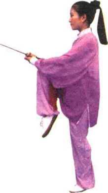13.2提膝捧剑二、13.2提膝捧剑剑尖向前,稍高于腰;左手剑指置于身体左侧,指尖向前;目视前方。|32式太极剑2
