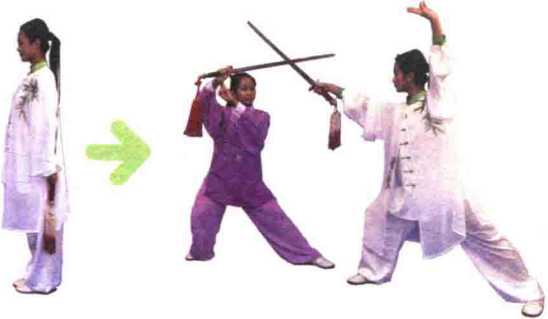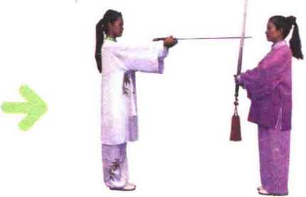 此动作属进攻性剑法。主要用于刺击敌方胸、喉、头.