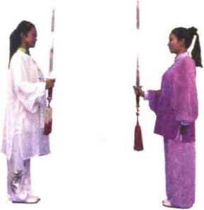 此动作攻防兼备。敌方刺我头部时,我用剑向上撩可撩击敌手腕