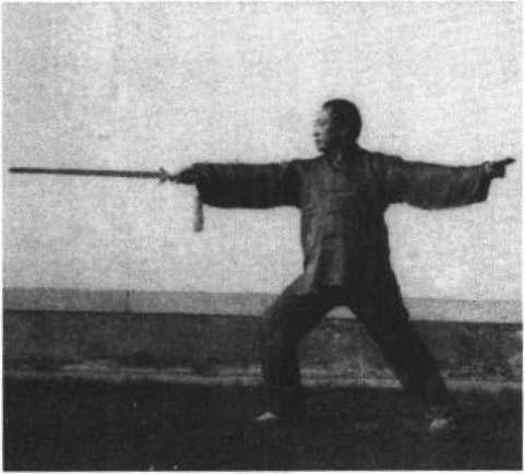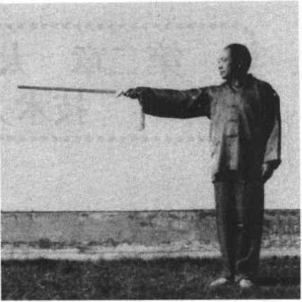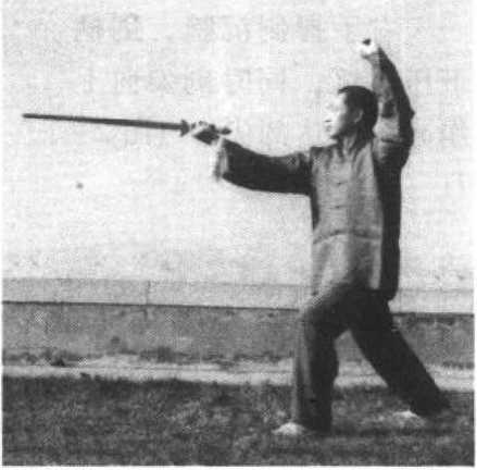 图2-3图2-3剑尖向前,用臂肘 之力向前伸送,力达剑 尖。立剑、平剑均可, 上刺头颈,中刺胸腹, 下刺裆腿。(图2-3)