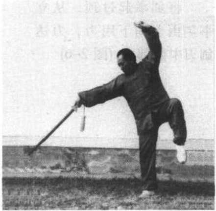 立剑,用剑尖向下啄 击,须提腕,力达剑尖。 (图 2-4)