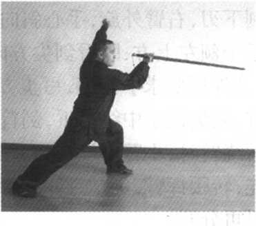 【技击作用】两手合力有下压来械,边化对方攻击,边直刺对 方咽喉的技击性。或捧剑静待对方变化,伺机或进攻或防守。