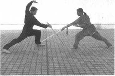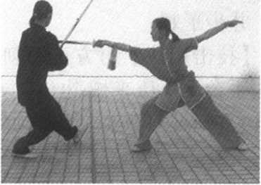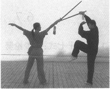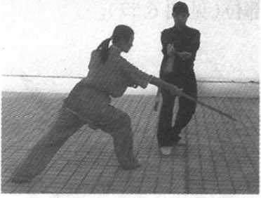 【技击用法】接上动作下挂后,起剑刺击,参见图6.56O