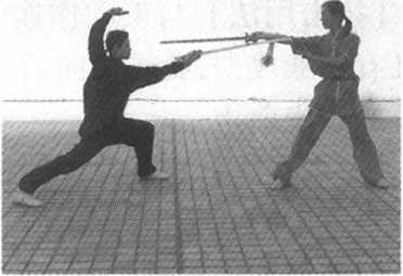 止对方刺我肩膀,并下压对方的剑(见图6.61 )o