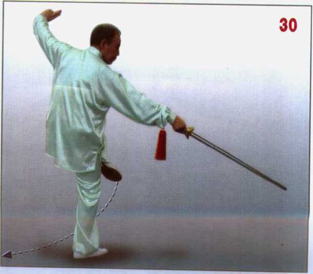 L右脚上步成独立步时,脚尖微向里扣,以便保持姿势的稳定。