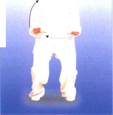 2. 两手臂向前平举时,容易形成一高一低,向下按时,两腿 屈膝过快,两手下没有下按意识。纠正:两手向前平举时,注意 沉肩坠肘,手臂内旋向前平举,两手同时到位,此时意识在手 背。当两掌下按时,随沉胯屈膝,两掌下按至腹前,与屈膝同时 完成,同时舒指展掌,不要坐腕翘指,意识在掌心。