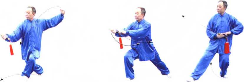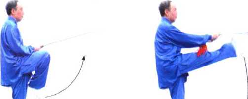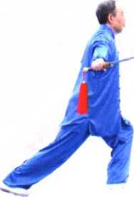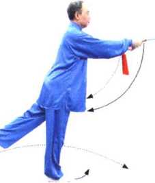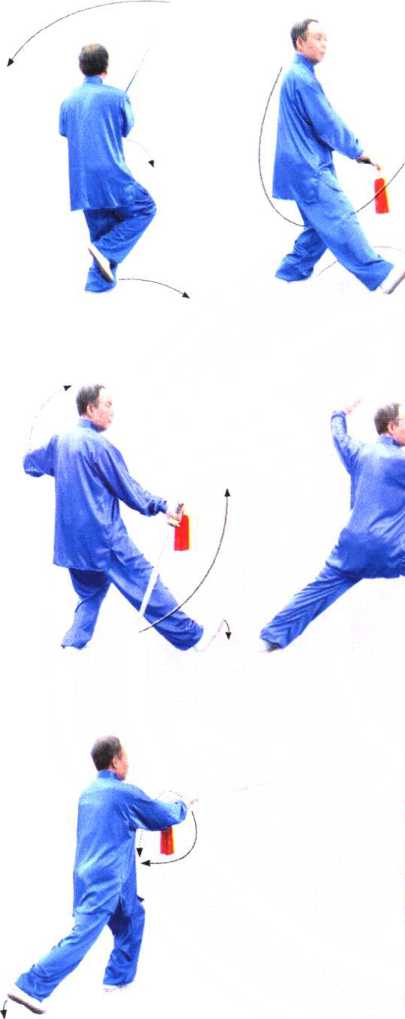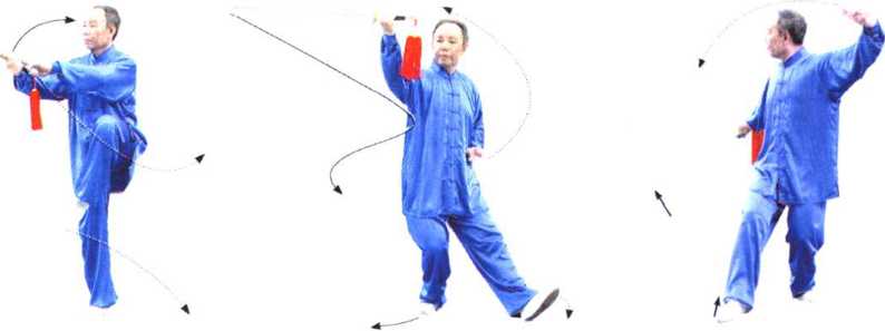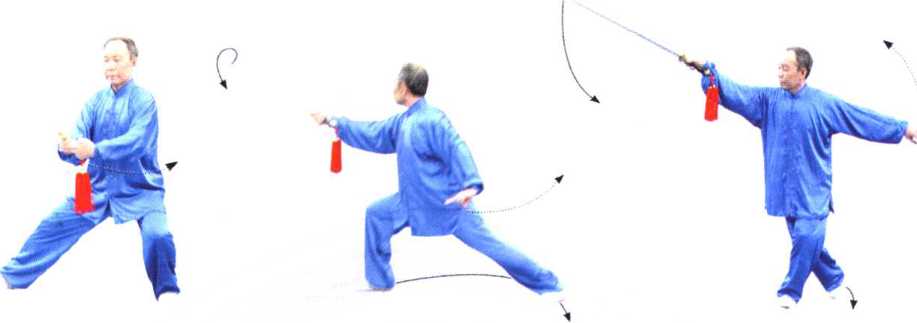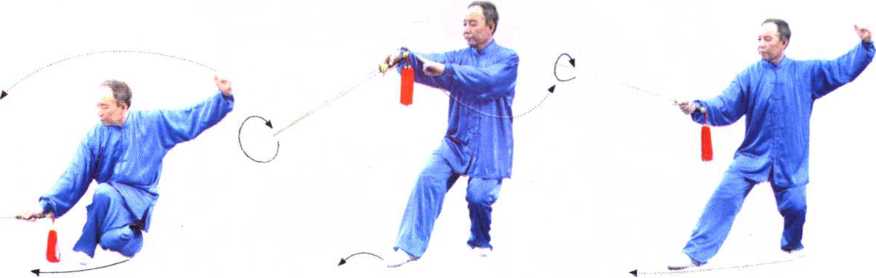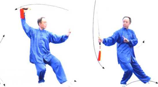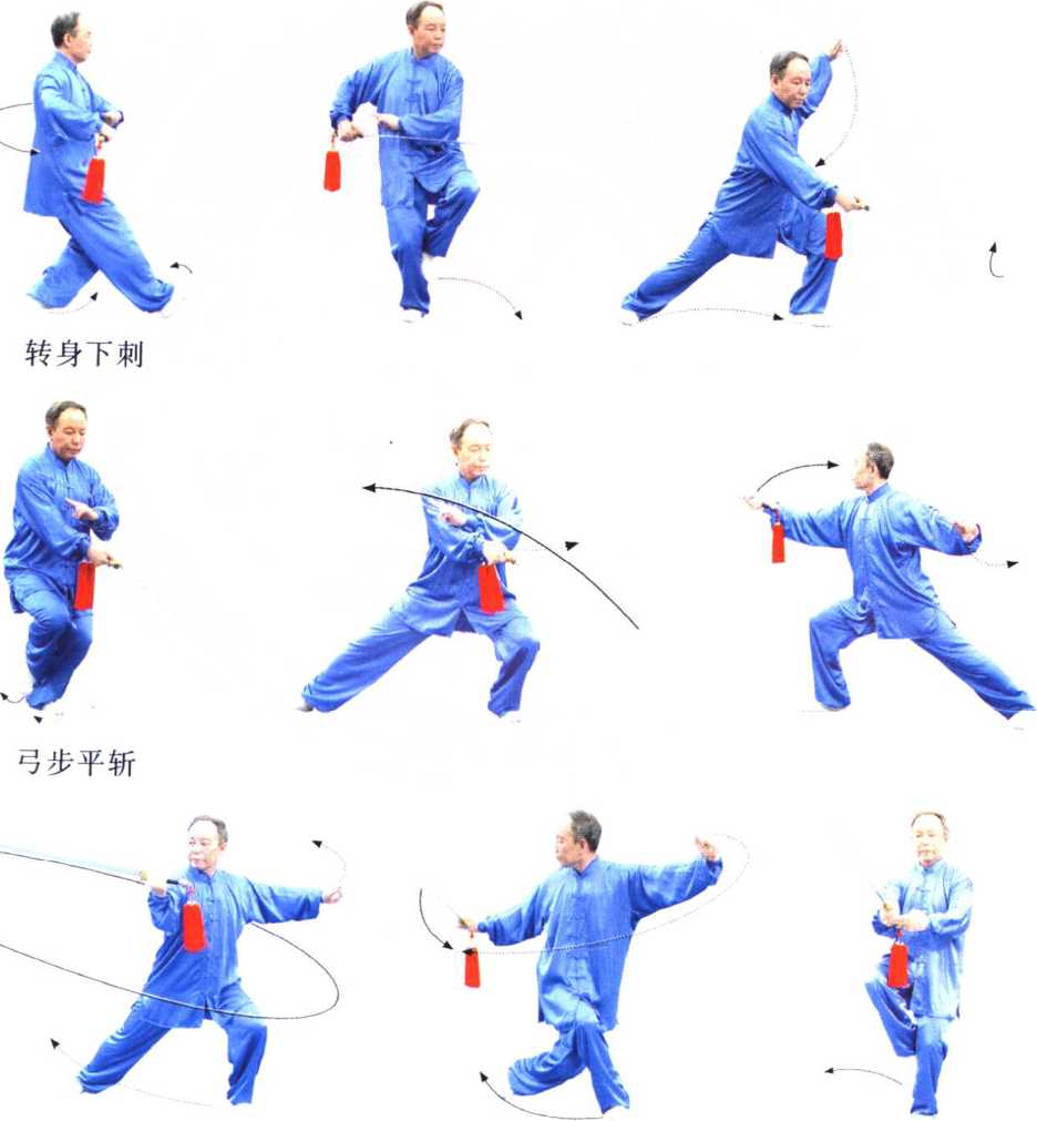 右弓步撩提膝捧剑蹬脚前刺跳步平刺弓步崩剑歇步压剑进步绞剑提膝上刺