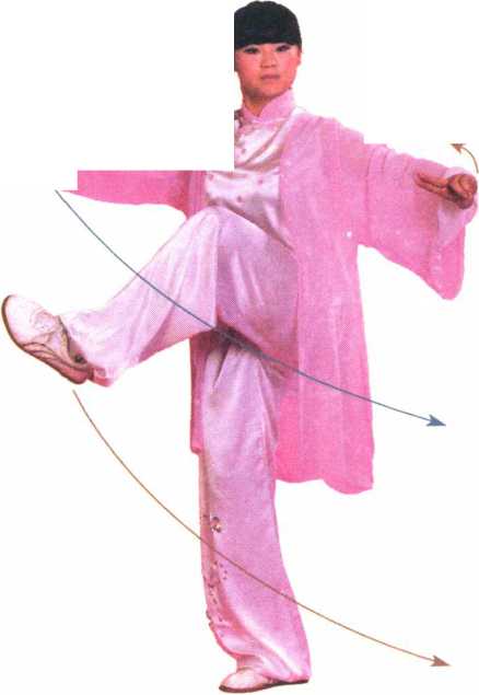 2 .提膝提剑时,上体要舒展,并微向左转和前倾,两臂要对称撑 开,重心保持稳定,目视方向东南。